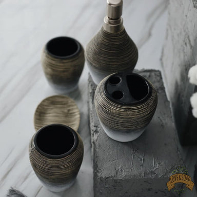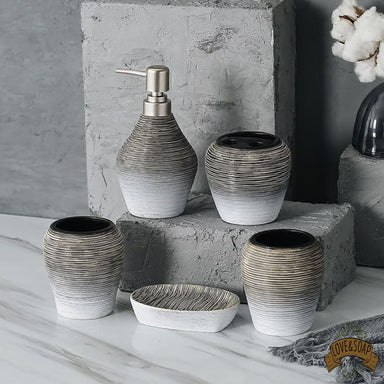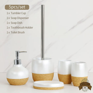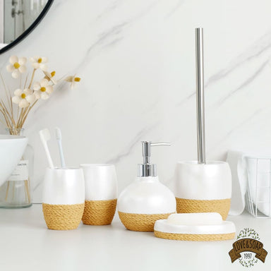 Ensemble de 5 accessoires de salle de bain Porte savon, distributeur de savon, deux gobelets et porte brosse à dents Fabriqué en céramique Teint...