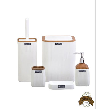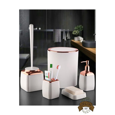 Ensemble de 5 accessoires de salle de bain Porte savon, distributeur de savon, porte brosse à dents, poubelle et brosse wc Fabriqué en plastique ...