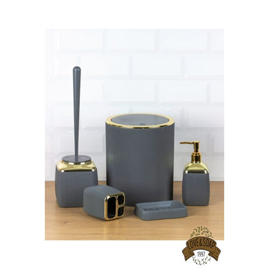 Ensemble de 5 accessoires de salle de bain et wc Porte savon, distributeur de savon, porte brosse à dents, poubelle et brosse wc Fabriqué en plas...