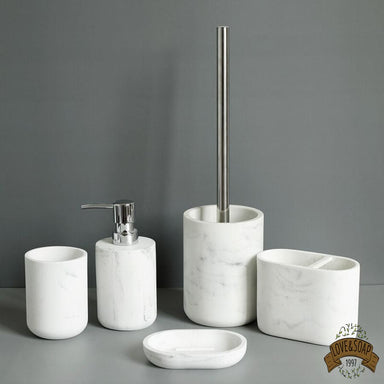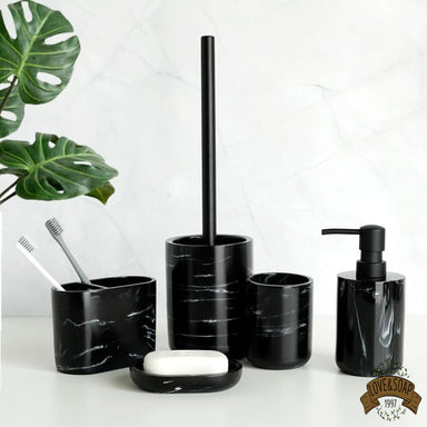 Ensemble de 5 accessoires de salle de bain et wc Porte savon, distributeur de savon, porte brosse à dents, gobelet et brosse de wc Fabriqué en ré...