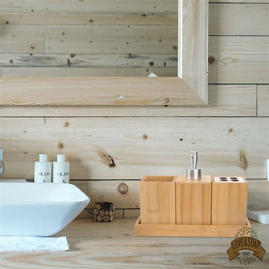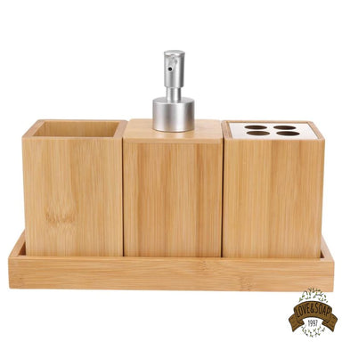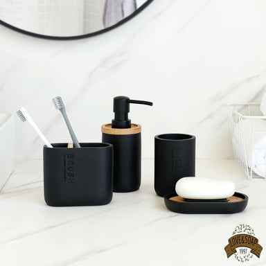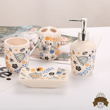 Ensemble d'accessoires de salle de bain élégant 4 pièces en céramique et bois