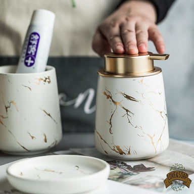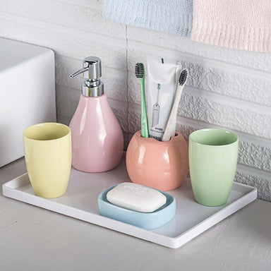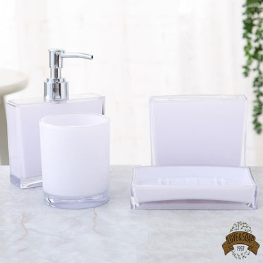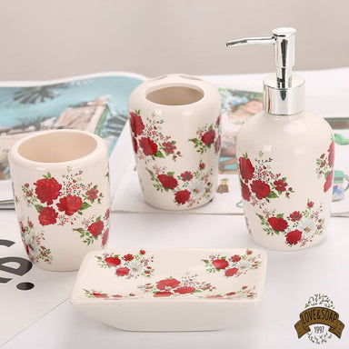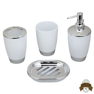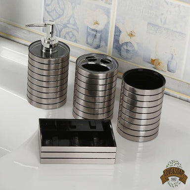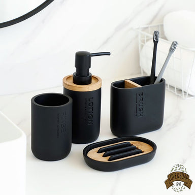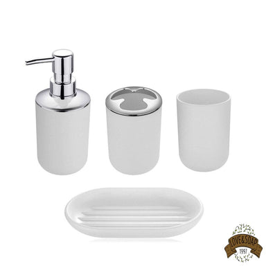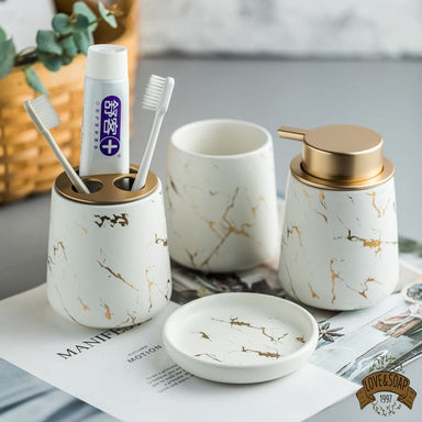 Ensemble de 4 accessoires pour votre salle de bain Porte savon, distributeur de savon, gobelet et porte brosses à dents Fabriqué en céramique et b...