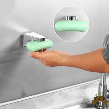 Sur Love&Soap , vous trouverez aussi des porte-savons magnétiques en inox, très simple d'utilisation et sans danger pour votre mur, il suffit d'enfoncer la capsule aimantée dans le savon grâce à ses dents en acier inoxydable pour pouvoir accrocher le savon sur son support.
