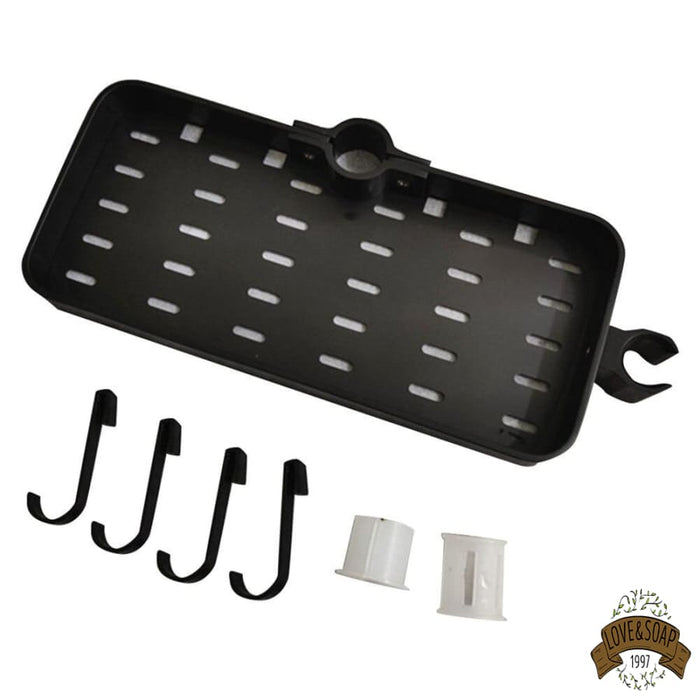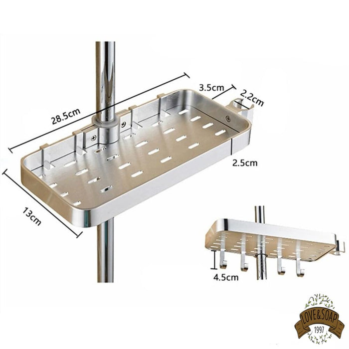 Ce serviteur de douche se pose en un clin d'œil sur votre barre de douche ou votre mitigeur, si celui-ci le permet, pour apporter un espace de rangement au plus près de vos besoins. Sa vis de serrage convient pour une robinetterie de 2,4 à 2,5 cm de diamètre.