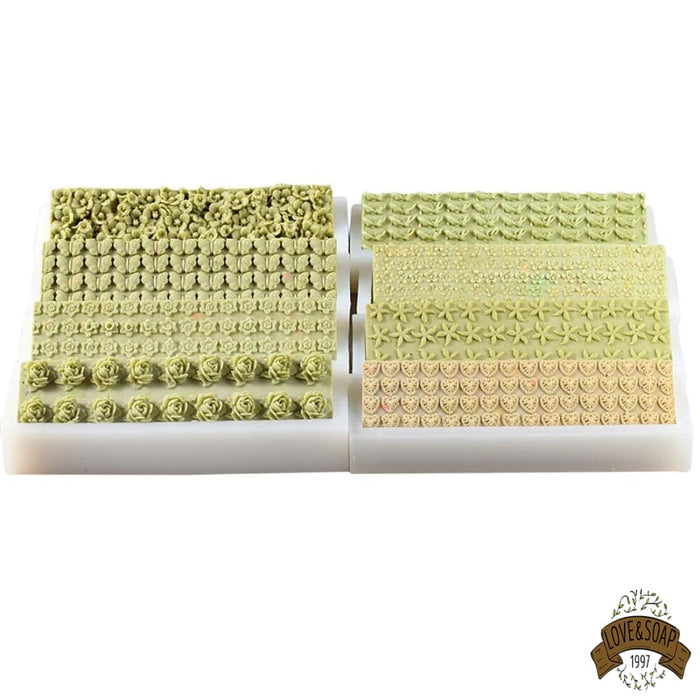 Choisissez entre ces huit moules à pain de savon en silicone de relief différents pour obtenir des pains aux motifs variés. De quoi créer de magnifiques savons une fois découpés.
