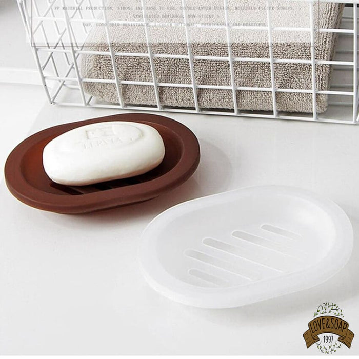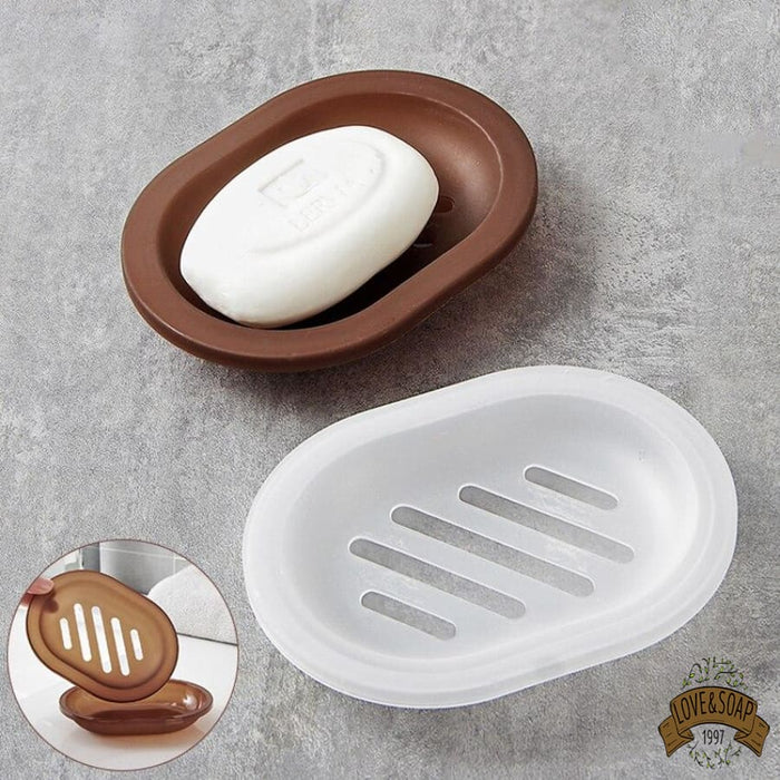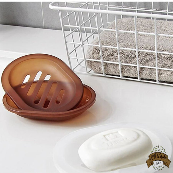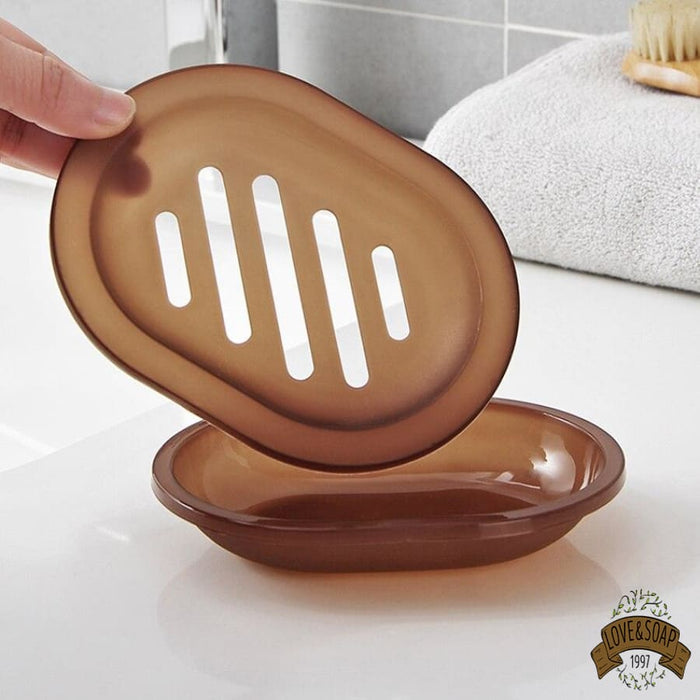 Couleur café ou transparent, ce porte savon est prévu pour laisser le savon sécher et ainsi rallonger sa durée de vie grâce à ses fentes drainantes.