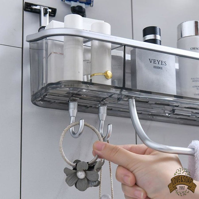 De plus pratique, avec ses multiples crochets qui vous permettent d'y accrocher vos accessoires de bain. L'étagère droite à, en bonus, un porte serviette bien utile pour avoir tout à portée de main.